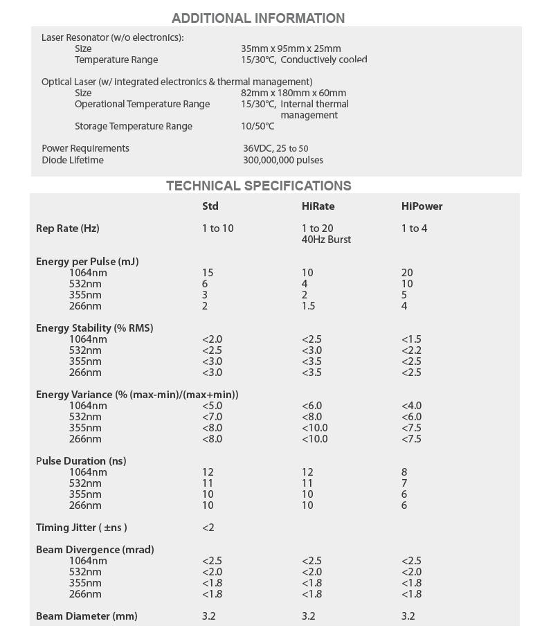 低重頻高能固體激光器(1064/532/355/266nm)